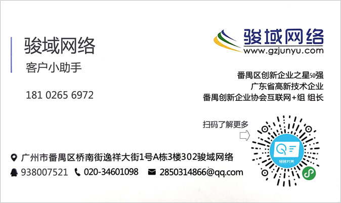 廣州駿域網(wǎng)絡(luò)科技有限公司成立于2005年,是一支由眾多具有多年實(shí)踐經(jīng)驗(yàn)的專業(yè)人士組成的高新技術(shù)團(tuán)隊(duì),專為企業(yè)提供網(wǎng)站建設(shè)、全網(wǎng)營銷、郵箱等服務(wù),我們擁有嚴(yán)謹(jǐn)?shù)某绦蜷_發(fā)人員、專業(yè)的美工設(shè)計(jì)、隨時(shí)為您效勞的售后服務(wù)人員,團(tuán)隊(duì)人數(shù)達(dá)一百多人。目前我們已經(jīng)榮幸的為廣州眾多知名企業(yè)提供了包括網(wǎng)站建設(shè)、手機(jī)網(wǎng)站、小程序、企業(yè)軟件開發(fā)等多種基于互聯(lián)網(wǎng)技術(shù)的服務(wù)。 通過長(zhǎng)期積累,駿域網(wǎng)絡(luò)目前已經(jīng)擁有50000多家客戶。